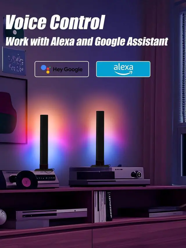 Work with Alexa and Google AssistantThe RGB Light Bar enables WiFi connection, Work with Alexa and Google Assistant for hands-free voice control. Effortlessly turn on/off, adjust brightness, switch 16 million colors and activate dynamic modes with simple voice commands for immersive gaming and scene ambience.
