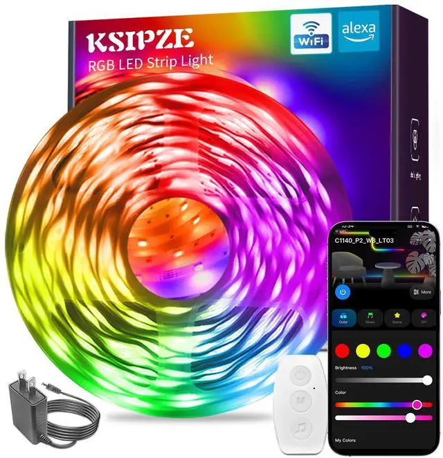 Smart WiFi LED Strip Lights, RGB+IC LED Lights for Bedroom Work with Alexa,APP Control, Music Sync, DIY Multiple Colors, Flexible Color Changing LED Strip Lighting for Home Room Decor, 16.4ft
