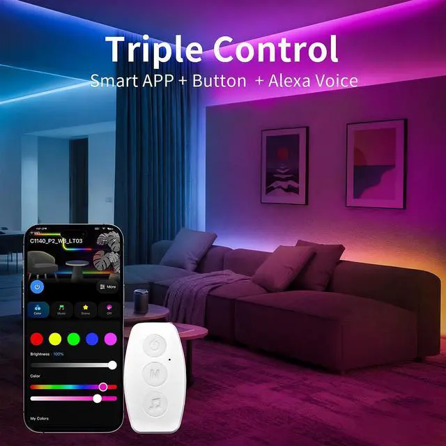 • APP Contorl: With a stable connection app control your LED lights,freely change in 16 million colors,adjust brightness,customize modes (Flashing,Jump,Fade,etc) in different speeds.