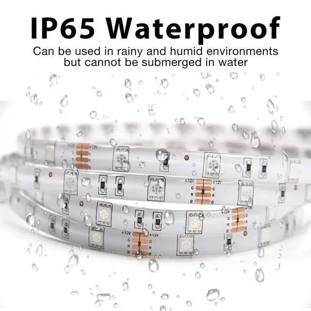 These led lights are IP65 waterproof, which means they can be protected against water jets (only the strips are waterproof, the power supply is non-waterproof)