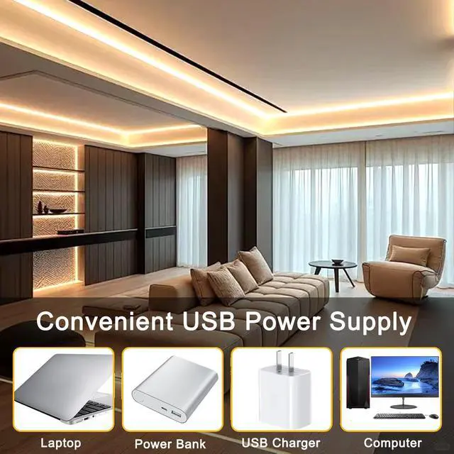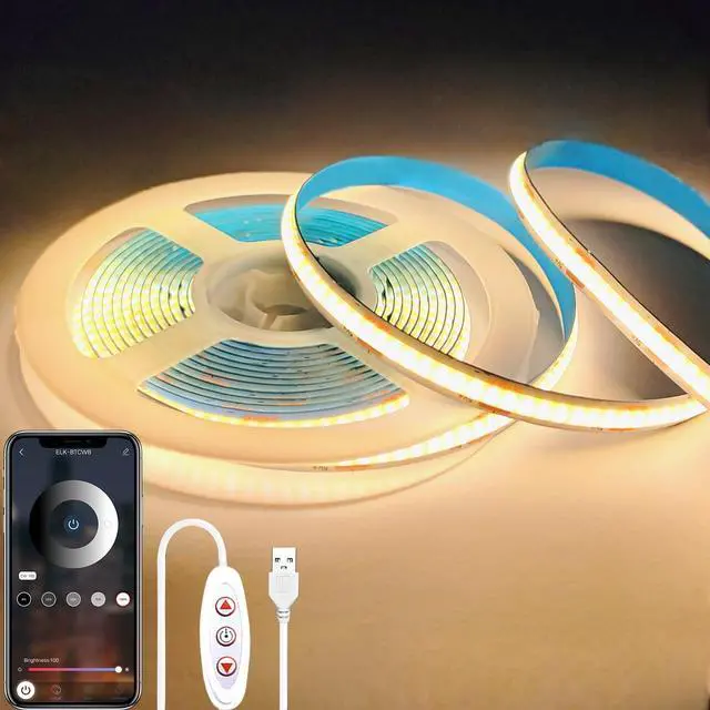 COB LED Strip Lights 6.6FT,3000K 5V USB Powered Dimmable Warm White Flexible Light Strip TV LED Backlights8mm Width LED Rope Lights with App Control for Living Room,KitchenShelf, Cabinet
