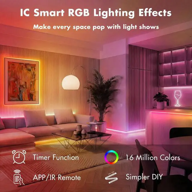 Upgraded IC Smart RGB Technology: Unlike traditional single-color RGB strips, smart IC technology enables multi-color display across segments within a single strip. Effortlessly create rich gradient colors to achieve popular dynamic effects like starry sky gradients and flowing chase lights.