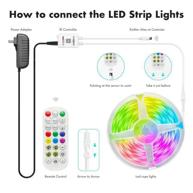 IC Smart RGB LED Strip Lights, 65.6FT LED Lights for Bedroom, App Control/Remote Control, Music Sync, DIY Design, Rainbow Chasing Effects, Strip Lights for Home, Party Decor