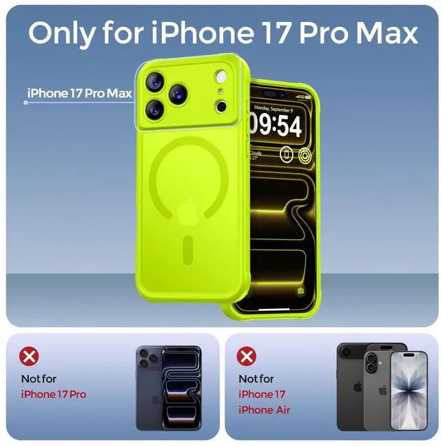 ![Alt view image 4 of 7 - Magnetic for iPhone 17 Pro Max Case, [Compatible with Magsafe] [Full Camera Protection] Translucent Matte Military Grade Shockproof with Anti-Fingerprint Phone Cover 2025, Fluorescent Green](https://c1.neweggimages.com/productimage/nb640/C5JMD2603050CUYXW5F.jpg)