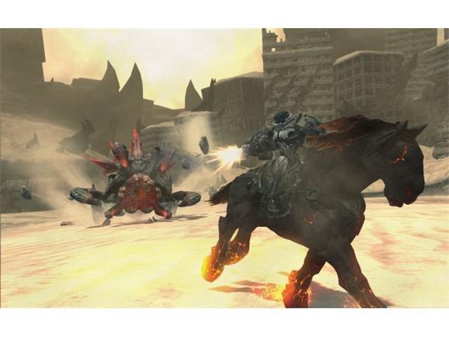 | Features | Experience the Godlike Power of WAR – Combining brutal attacks, supernatural abilities and seamless traversal, delivering intense action combat and epic adventure, set in an immersive demon ravaged world. Open World Exploration – Each open world hub offers players the freedom to explore and make their own game-experience. Extreme Arsenal of Weapons – Unleash WAR’s fury with an expansive arsenal of weapons, from the fantasy oriented to the modern and the ability to use virtually anything within your environment as a weapon. Increase or unlock new abilities – Customized to your gameplay style. Build up WARs Wrath powers and unleash them in spectacular attacks—or collect Soul Cores to increase or unlock new abilities. Horseman of the Apocalypse – Gain the services of RUIN, WAR’s phantom steed, blazing a trail through enemies across devastated environments. Graphic Novel Art Style – Joe Madureira's (X-Men, Battle Chasers, The Ultimates) unique visual art style and original storyline. Cinematic Gameplay Experience – Harnessing the power of next-generation console systems, Darksiders: Wrath of War will immerse players in a rich cinematic gameplay experience—featuring beautiful graphics, detailed special effects, cinematic lighting and an epic musical score that compliments the in-game action. |