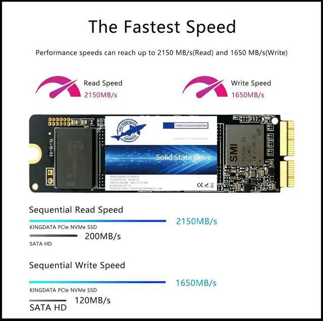 HIGH SPEEDDOGFISH's SSD replacement for Apple computer uses M. 2 NVMe PCIe Gen 3.0X 4 3D NAND flash technology, with read speeds up to 2200MB/s and write speeds up to 2000MB/s. This provides faster data access, PC boot up, and file transfer speeds, improving overall system responsiveness and enabling quick upgrades for your Apple laptop. Apple computers come with original interfaces, and there is no need to use any adapters.