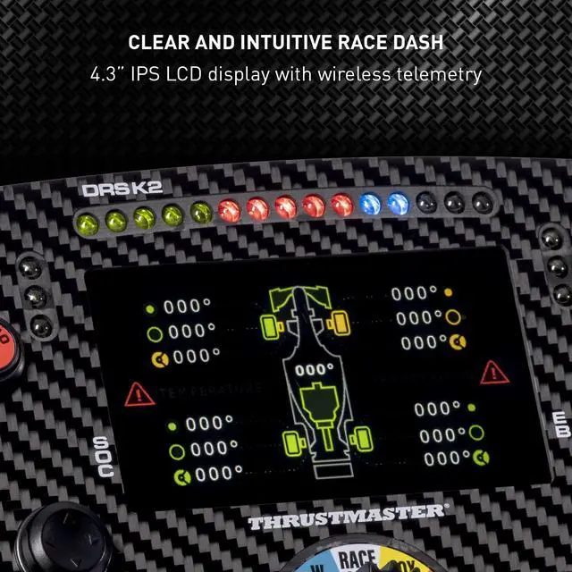 | Features | The latest creation resulting from the decades-long collaboration between Thrustmaster and Ferrari, this product is a 1:1 scale replica of the wheel from the legendary Ferrari SF1000 single-seater race car. The Thrustmaster Formula Wheel Add-On Ferrari SF1000 Edition features the iconic labeling and official markings found on the real wheel, as well as a 4.3-inch (109-mm) IPS LCD display showing up to 69 items of racing information. |