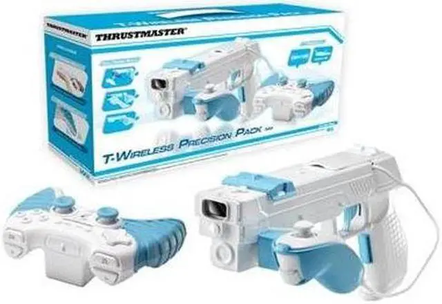 | Features | Wireless joystick, 2.4Ghz (Long range and no latency) Compatible with Wii, WiiWare and Virtual Console games (standard games) and Gamecube (that can be played with the Gamecube joystick) Vibration Feedback: simulates force effect in compatible games Uses only 3 AAA batteries (not included) Buttons "Mapping", "Slow" and "Turbo" allow for total customization Optimised handling with rubber grip Double trigger and double position wireless pistol For playing shooting games and FPS on Wii 1 trigger for shooting +1 trigger for reloading or other 2 possible positions: Nunchuk compartment detached ("Arcade Gun" style) or on the side ("Machine Gun" style) No batteries required Plug & Shoot: Simply insert your Wiimote* and your Nunchuk* to play * Controllers sold separately |