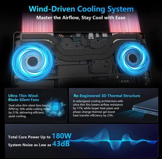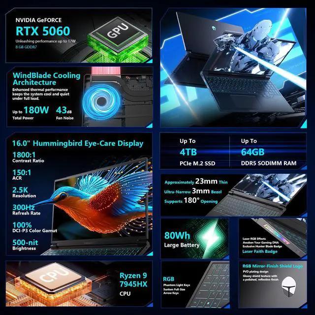 CPU:Ryzen 9 7945HX ( 16 Cores, 32 Threads, 64MB L3 Cache, 2.5 GHz base frequency, up to 5.4 GHz max turbo frequency)