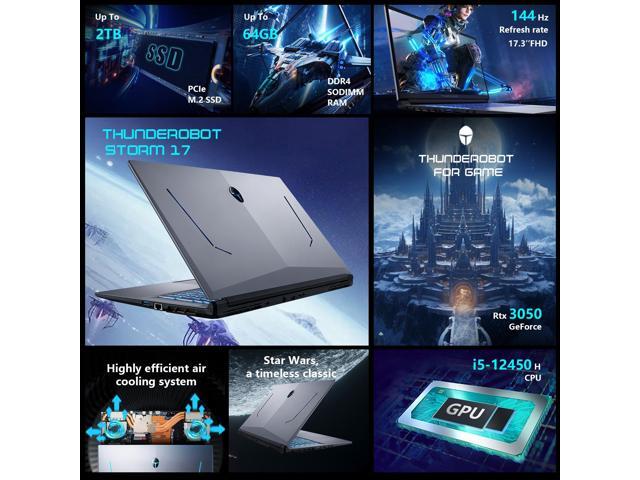 Thunderobot Storm 17 Gaming Laptop, 17.3" FHD 144Hz, Core i5-12450H, GeForce RTX 3050, 64GB RAM, 2TB SSD, RGB Keyboard, Win 11 Home