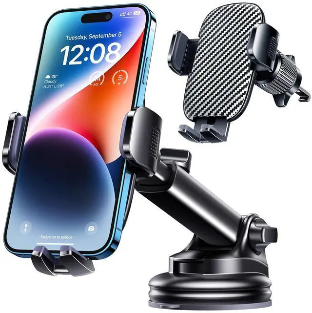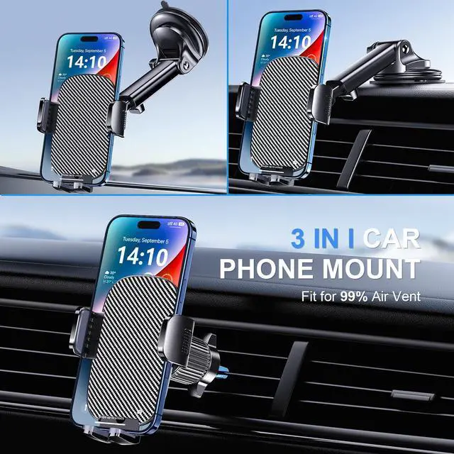 Upgraded 3 IN 1 Car Phone Mount: Phone mount for car is equipped with a stronger suction cup, thinner vent clip, and an innovative support ring for extra support, which can be freely mounted on the dashboard, windshield, and air vent. A good helper for all Dash Mounting Kits Video Installation. Suitable for most cars, pickup trucks, SUVs, trucks, and taxis.