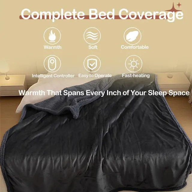 This 72"x84" full-size electric heated blanket comes with 5 heat levels and 10-hour auto shut-off, delivering 10-minute rapid warmth (levels 2-3 recommended for overnight use). Crafted with dual-sided same-color plush, its ultra-soft, skin-friendly, and flame-resistant, plus equipped with overheat protection for safety. Foldable for easy storage, it fits beds, sofas, offices, and reading nooks. Detach the controller to machine wash (cold gentle cycle, low tumble dry); the blanket retains shape, softness, and heating performance after washes. Each pack includes a user-friendly controller and manual, making it a perfect Christmas/birthday gift for family and friends.