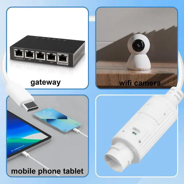 USB-C to Ethernet: Comes with a IP65 waterproof four-piece set to ensure power supply stability, prevent poor contact of the crystal head, effectively waterproof, dustproof and oxidation-proof