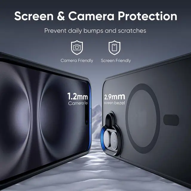 Screen & Lens ProtectionOur fits Magsafe Case for iphone 16 has 2.9 mm camera lips and 1.2 mm screen lips that help your phone avoid rubbing against surfaces that leave permanent scratches.