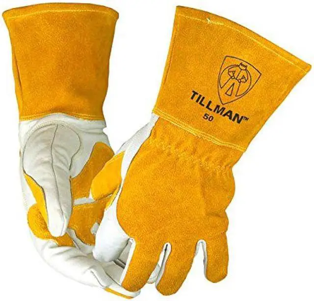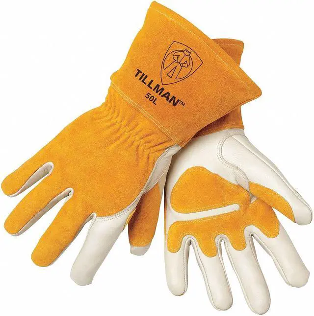 Welding Gloves, Welding Glove Application MIG, Leather Palm Material Deerskin, Glove Back Material Cowhide, Glove Length 14 in, Glove Leather Grade A, Thumb Style Wing, Glove Cut Gunn - Full Back, Glove Color Family White, Cuff Gauntlet, Glove Size XL, Hand Left and Right, Color Brown/White, Cuff Material Cowhide, Design Welders Glove, 1 Pair. This item has been restricted from sale in the following state (s): []
