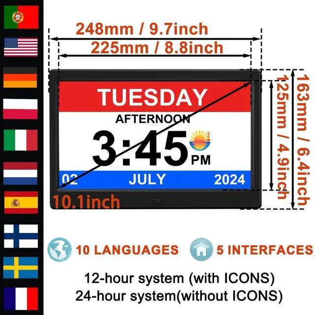 right size 10.1 inch screen for all use as desktop clock, bedroom clock or wall clock