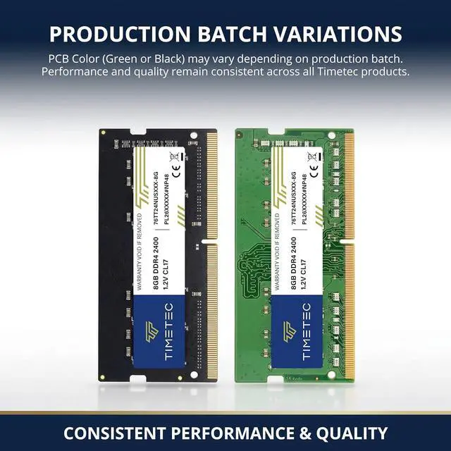 Specs PCB Color (Green or Black) and Rank (1Rx8, 2Rx8, or 1Rx16) may vary depending on production batch. Performance and quality remain consistent across all Timetec products.