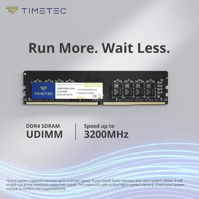 Timetec 16GB DDR4 3200MHz (PC4-3200AA) PC4-25600 UDIMM Desktop RAM 288-Pin 1.2V CL22 Non-ECC Unbuffered DIMM Memory Module Upgrade