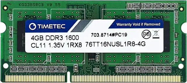 Timetec 4GB DDR3L / DDR3 1600MHz PC3L-12800 / PC3-12800 Non-ECC Unbuffered 1.35V / 1.5V CL11 1Rx8 Single Rank 204 Pin SODIMM Laptop Notebook PC Computer Memory RAM Module Upgrade (4GB)