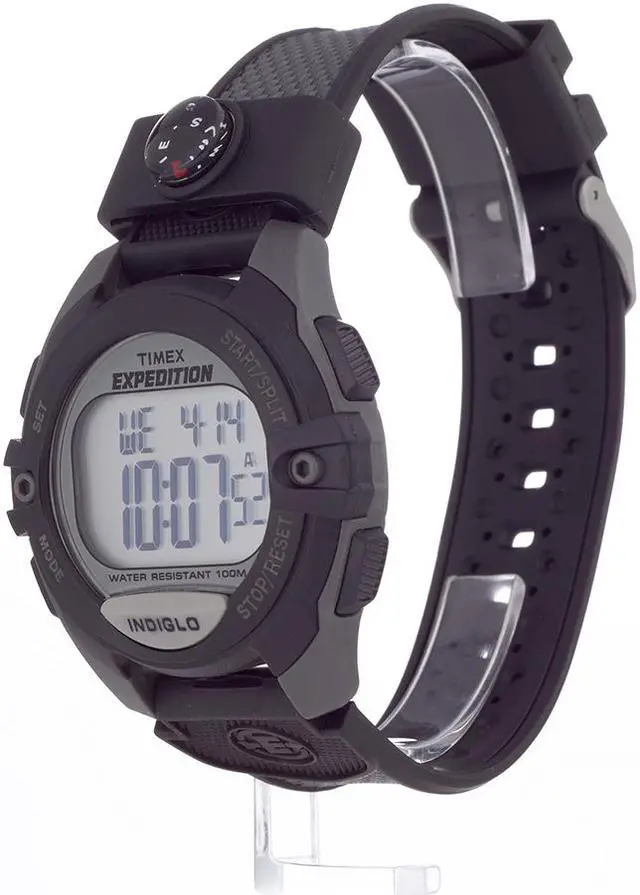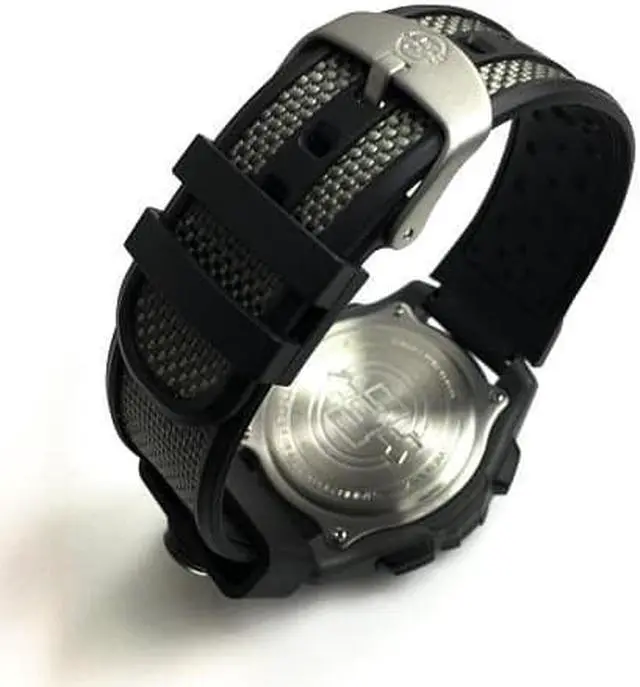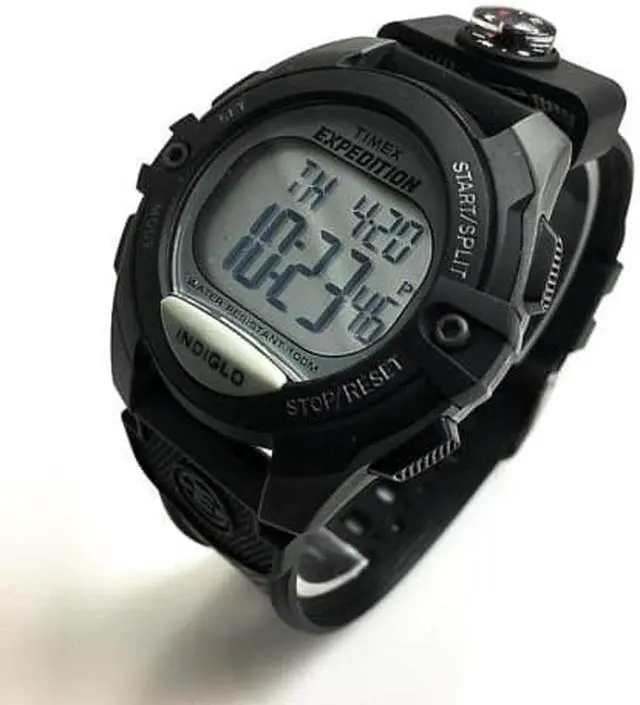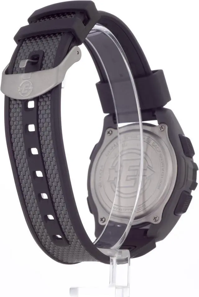 Standard digital dial. 100 hour chronograph with lap and split times. 24 hour countdown timer. Three daily, weekday, weekend, or weekly alarms with five minute backup.