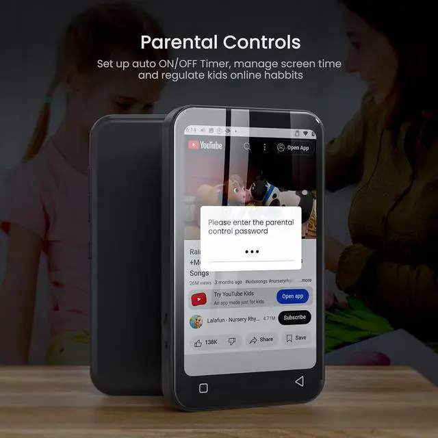 Set Up Parental Controls - The digital music player does not allow the installation of additional apps, which prevent children from installing inappropriate apps. But you can uninstall pre-installed apps that you don't want your kids to use, and set a reset lock to prevent it from being restored. Additionally, you can set the duration of internet usage.