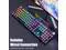 This illuminated keyboard features up to 9 RGB rainbow backlight modes. Press "Fn+Ins" to cycle through backlight modes. You can also adjust the brightness (multiple levels) and speed of the lighting effects. The backlight will turn off automatically when set to the lowest brightness level. The keycaps are made using a dual-injection molding process, where the characters are backlit, ensuring clear visibility even in low-light conditions.