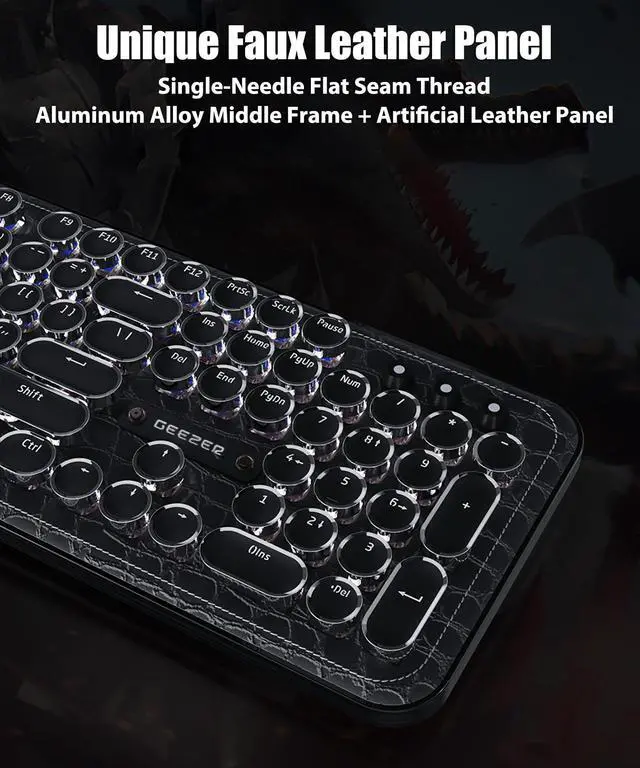 This unique typewriter keyboard combines metal and leather craftsmanship. The aluminum alloy middle frame is paired with a specially designed artificial leather panel, complemented by single-needle flat stitching technology. Compared with traditional metal panels, it offers a more premium texture and a more comfortable hand feel.