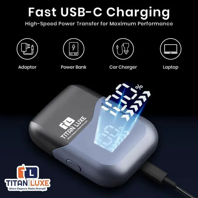 Enjoy complete freedom with its IPX7 waterproof body, allowing both wet and dry use. Whether you prefer shaving with foam in the shower or a quick dry trim before heading out, cleanup is easyjust rinse the detachable head under water. With USB Type C fast charging, TITAN LUXE delivers up to 120 minutes of runtime after a quick 90-minute charge. The LED display shows remaining power at a glance, ensuring youre never caught off guard.