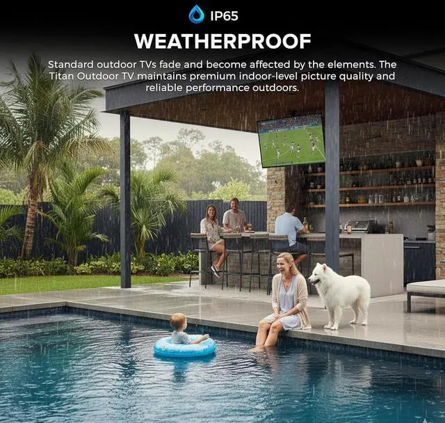 Designed for reliable outdoor entertainment, this outdoor TV is built to perform where standard indoor screens fail. Whether you need a dependable outside TV for a covered patio, porch, or backyard seating area, this model delivers consistent performance as a weather-resistant and weatherproof TV for everyday outdoor viewing. Engineered as a durable outdoor waterproof TV, it provides protection against moisture, humidity, and light rain, making it a practical waterproof TV for outside use in covered environments. This outdoor weatherproof TV is ideal for customers searching for a weatherproof outdoor television that balances durability with modern smart features.