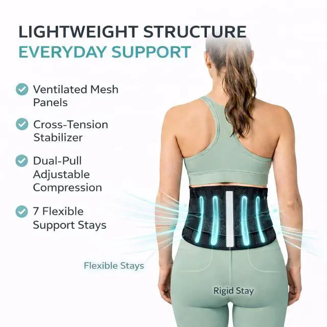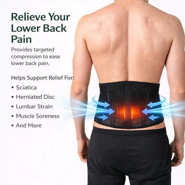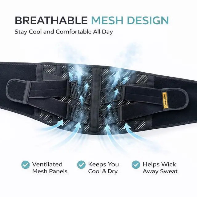 Introducing our breathable, lightweight back support belt designed for men and women seeking relief from lower back pain, sciatica, herniated discs, and bulging discs. Whether you're recovering from surgery, struggling with discomfort while sitting or sleeping, or need daily pain relief, this back brace provides gentle yet firm support to stabilize your lower back.The thin, airy design ensures all-day comfort without bulk, while the adjustable fit offers targeted compression for slipped disc relief and improved posture. Perfect as a lower back pain belt or post-surgery support wrap, its your ideal companion for back pain relief on the go.