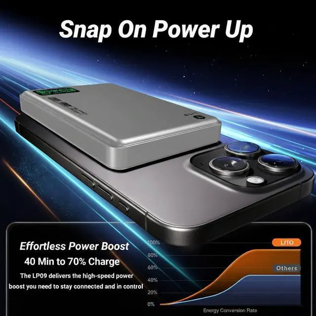 Stop guessing with blinking lights. Our smart display gives you total control, showing precise battery %, charging status (wired/wireless), and real-time power output at a glance.
