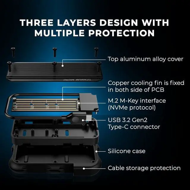 - Fixed USB 3.2 Gen 2 cable External SSD with self storing, never lose your cable again. Includes a USB Type-C to Type-A adapter for versatility.