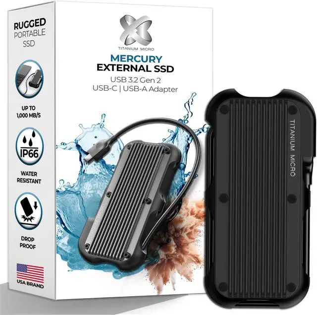 BOX CONTENTS: 1 x Titanium Micro Mercury External SSD 1 x USB Type-C to Type-A Adapter