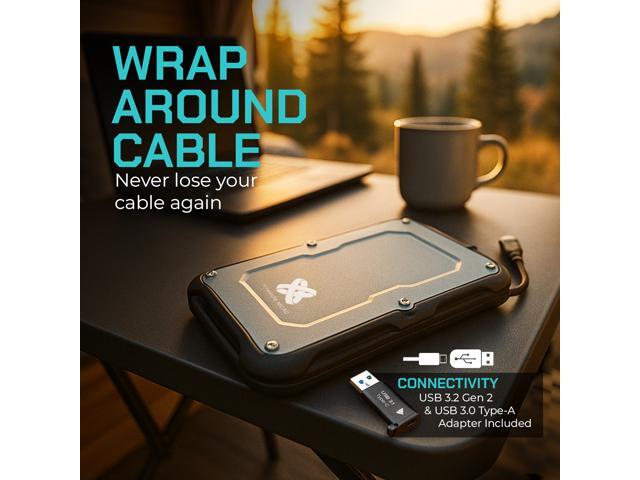 - ALL-IN-ONE POUCH: Integrated USB-C (3.2 Gen 2) cable wraps around the drive and flip-out USB-A adapter snaps in. Comes with a handy carry pouch for secure storage and transport.