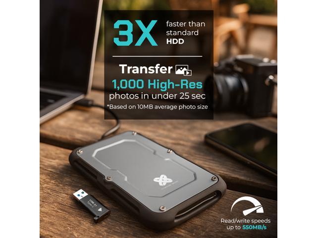 SAVE TIME WITH SPEED: A fast external SSD delivering up to 550 MB/s read/write to move hundreds of photos or hours of 4K video in seconds. Spend more time creating and less time waiting.