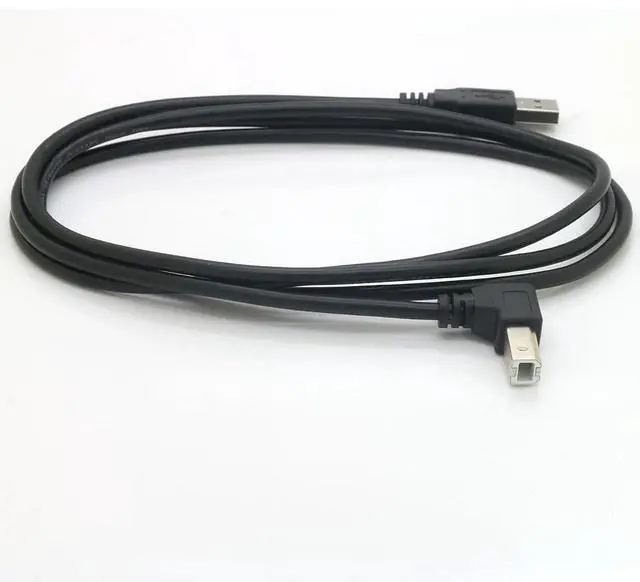 90 degree USB printer cable for a wide range of applications, USB A male to B male printer cable has a standard USB connector on one end and a standard 90 degree angle connector on the other end for use in tight spaces