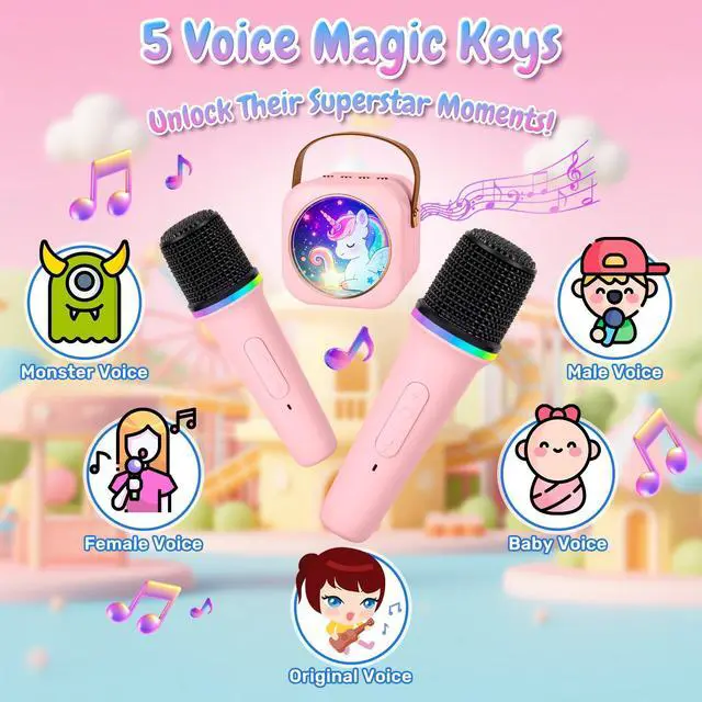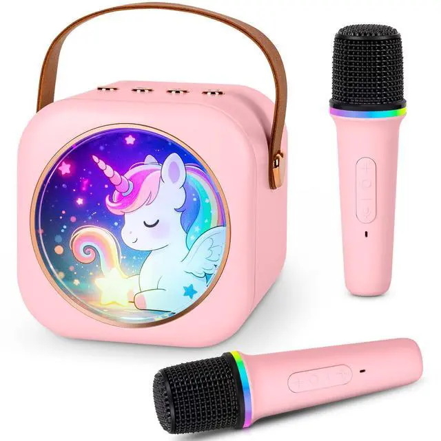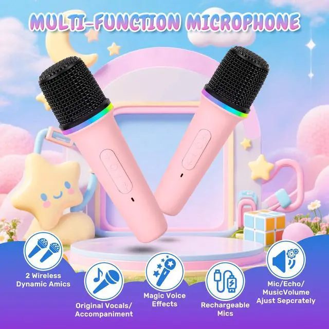 mini karaoke machine with 2 wireless microphones
