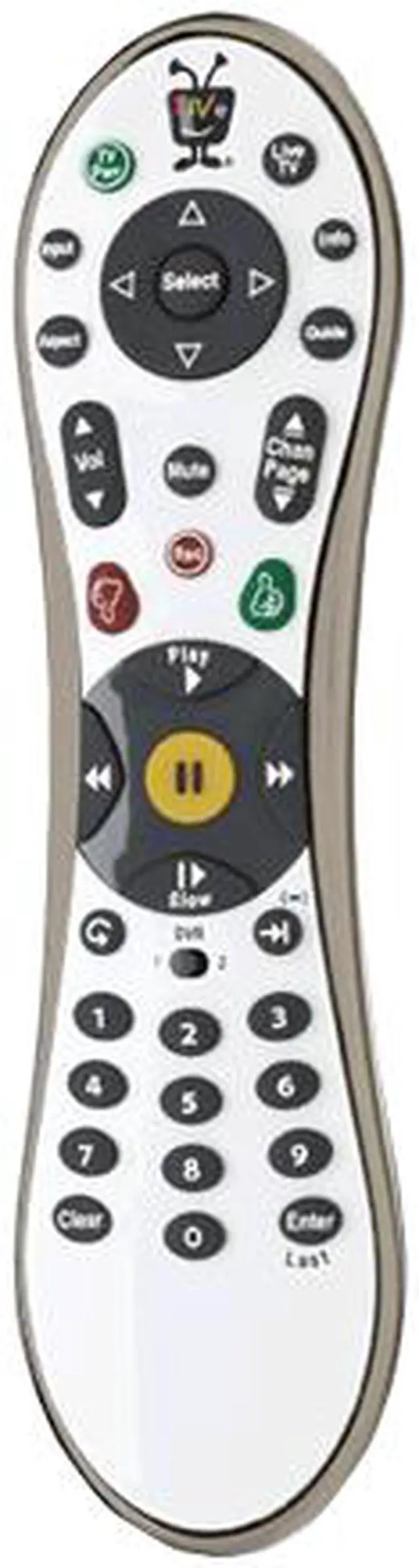 | Features | Backlit keys - Keys light up for readability in a darkened room Learning capable - Programmable to control power, input, volume, and mute on your TV and A/V receiver using built-in database of commands, or learn these commands directly from your TV's and receiver's remote controls DVR switch - Controls two TiVo boxes in the same room with the flick of a switch Gloss white finish, with chrome rim Controls most TiVo boxes - Works with TiVo Series2, TiVo Series3, Humax Series2, Philips Series1, and Philips, Hughes, Samsung, and RCA DIRECTV DVR boxes with TiVo service. Compatible with Pioneer, Toshiba, and Humax DVD recorder boxes with TiVo service (although lacks DVD-specific keys). Does not work with Sony boxes or the Toshiba DVD player with TiVo service (SD-H400). Not compatible with Nero LiquidTV | TiVo PC software |
