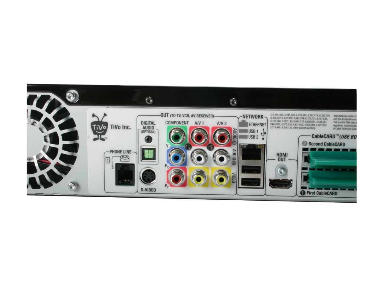 Phone jack S-Video Out Component Video Out Composite Video and Stereo Out 2 USB Ports HDMI Out 2 CableCARD Slots Digital Audio (Optical)