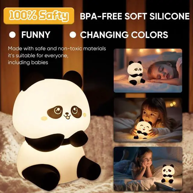Adorable Night Light The Panda Night Light is made of safe, non-toxic, food-grade silicone. As a touch-sensitive baby night light, the thickened silicone outer layer makes it durable and resistant to breakage. It instantly relieves stress and functions as a baby night light.