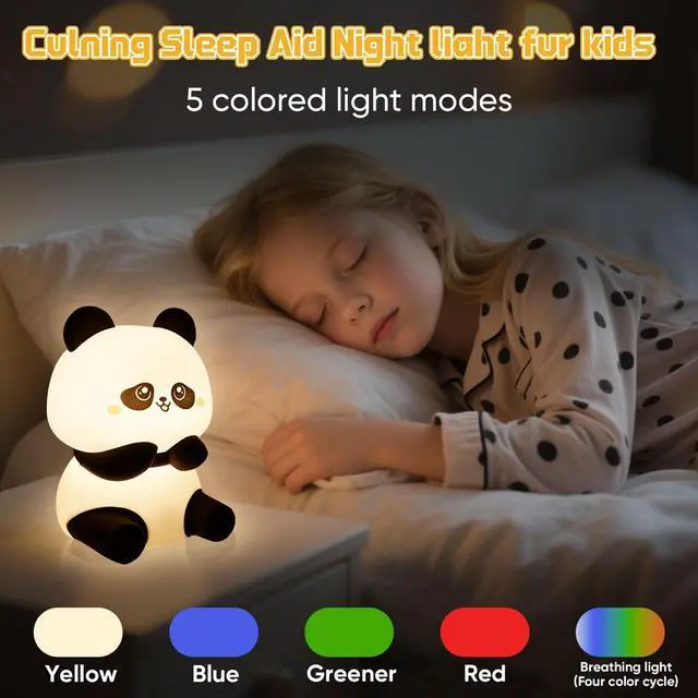Soft Light for Sleep The Panda Night Light emits a soft, non-glaring light at night. The comfortable light helps babies fall asleep faster, and the warm light makes them less afraid of the dark, allowing them to sleep peacefully.
