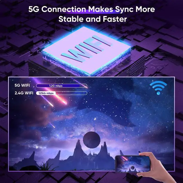 Your life will be more interesting with this small WiFi Bluetooth projector. You can get clear and vibrant images for movies and games via 5G WiFi connection. And also can enjoy excellent sound quality by easily pairing your audio devices with Bluetooth.