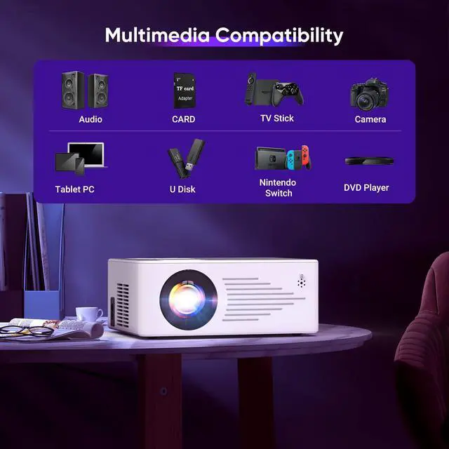 TMY movie projector is perfectly compatible with TV stick/ Chrome-cast. It equips HDMI/AV/USB/SD ports, which can be easily connected to a variety of media devices, such Laptop, PC, TV Box, DVD player, PS4 and so on. You can experience more fun by connecting these devices with the mini projector.