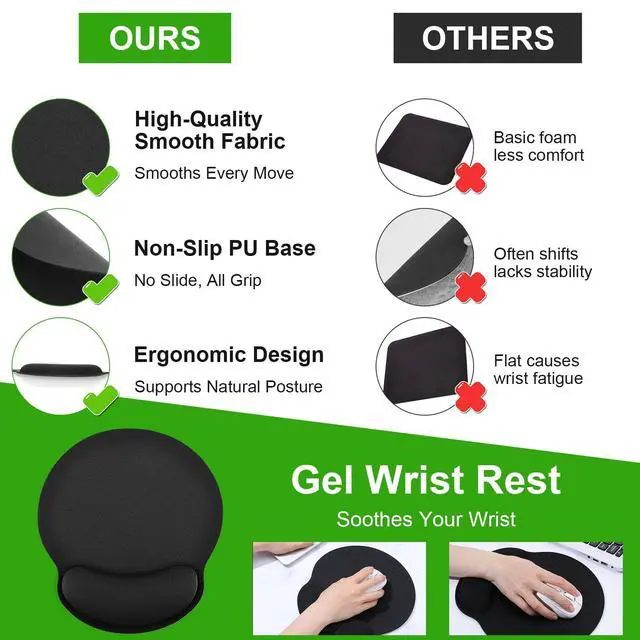 6 Pcs x Ergonomic Mouse Pad with Wrist Rest Support