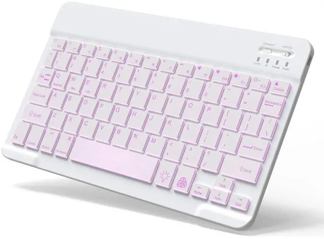 Backlit Bluetooth Keyboard Small Portable Wireless Keyboard Rechargeable Illuminated for Android Samsung Tablet Cell Phone Smartphone iPad A16 11th 10th Generation iPad Pro Air Mini iPhone (White)