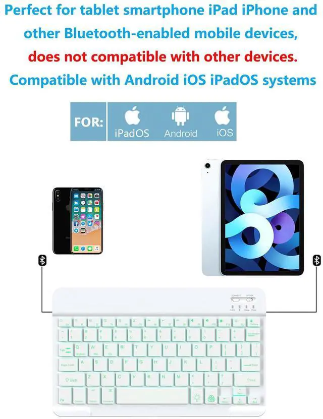 • Broad Compatibility: It's suitable for tablet smartphone cell phone, Samsung galaxy tab, iPhone iPad, iPad Air, iPad Mini, iPad Pro and so on mobile devices with built-in Bluetooth, and compatible with Android, iPad OS, iOS, etc. multiple operating systems. This Bluetooth keyboard is specially designed for small mobile devices such as tablets, smartphones. Not compatible with desktops, laptops, Macs, MacBooks, PCs or any computer systems.