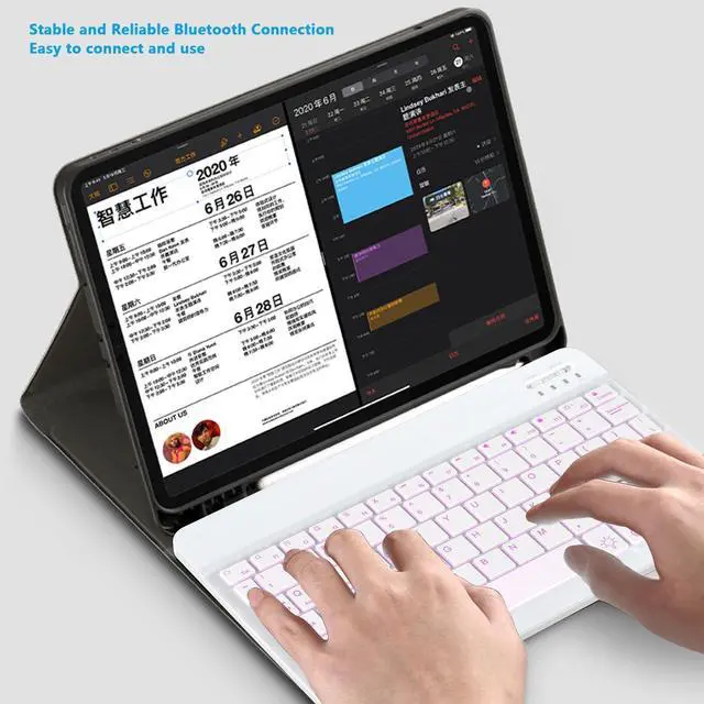 The back of the keyboard is aluminum alloy design, which is perfect for use with iPad/ tablet case with magnetic adsorption function.