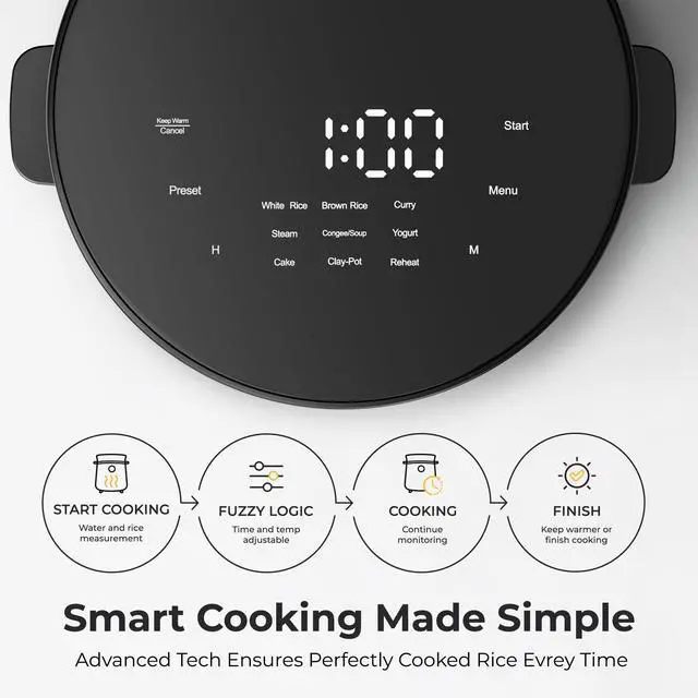 MULTIPLE COOKING MODES : TOKIT mini rice cooker can not only cook rice, but also cook a variety of dishes. It has 9 cooking functions, including white rice/brown rice/curry/steaming/soup/yogurt/cake/clay rice/reheating. Even novices can meet different cooking needs.