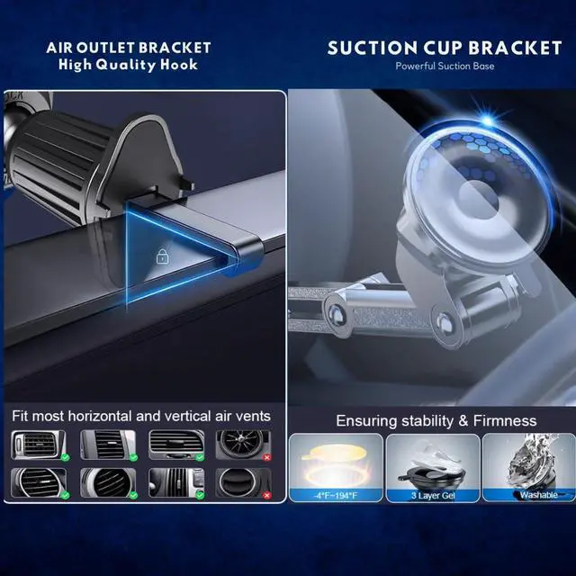 VERSATILE MOUNTING: Features 3-in-1 mounting options with suction cup for windshield, vent clip, and dashboard mounting for flexible placement in your vehicle