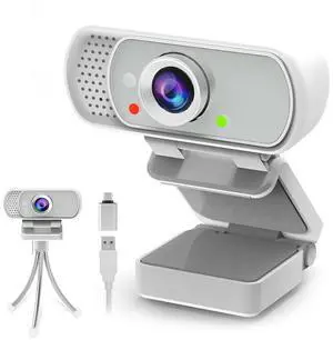 Webcam with Tripod Privacy Shutter: 1080P FHD Web Camera with Mic, Plug & Play USB A USB C Webcam with Stand, White Wide Angle Noise-Canceling Microphone Compact Web Cam for Online Meeting Classes